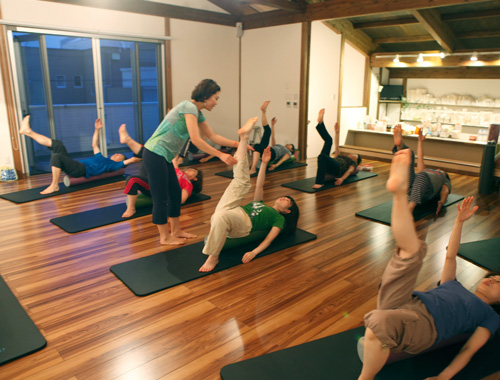 ヨガ・ピラティススタジオ「ポンテ・マル・スパッツィオ」(ponte・spazio)は静岡県、沼津市にある。一軒家風のスタジオの扉を開くと、心地よく風が吹き抜ける広々としたスタジオが広がる。親子連れやご夫婦など幅広い年代の生徒さんがここに集い、おもいおもいにヨガやピラティスを楽しみ、レッスン後はカウンターでゆったりと寛いで過ごすのだそう。「これまでどんなスポーツも長続きしなかったけれど、この場所でなら無理なく気持ちよく体を動かせる」という声がインストラクターやオーナー高橋さんの原動力になっているという。