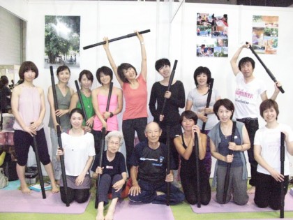 シニアのためのヨガ棒第二弾のレッスンは、腰と膝がテーマ。なんと86歳のご参加者も!