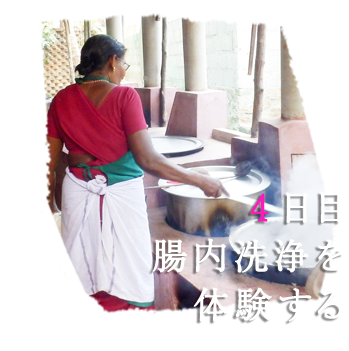 いつもお通じは良く、この日の朝もクリニックに来る前にトイレには行っておいたので下剤の効果はあるのか疑問だったが、2時間後徐々にお腹が痛くなり、その後3時間はトイレから離れることができなくなった。やっとその嵐が去った14時頃、もらったお粥を食べると体が少し落ち着いた。夕方にはクリニックに戻り初めの2日間と同じ治療を受けた。そして、キズィー(Kizhi)という治療が加わった。ふかした米と薬を野球ボール大にガーゼで包み、それを温かい液体の中に浸けた後で体中にポンポンと叩き込むマッサージ、その後はいつもの黄色い粉のマッサージ、ウドゥヴァルタナムを受けた。