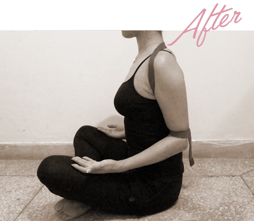 両肩を正しい位置へと移動させるだけで、両方の肺にゆったりとスペースが与えられ、スムースで深い呼吸ができるようになります。ヴィラ・アーサナやタダ・アーサナでも取り入れられる他、プラナマヤの準備としても有効です。